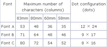 Font A: 1.50 × 3.00 mm Font B: 1.13 × 2.13 mm Font C: 1.00 × 2.00 mm |