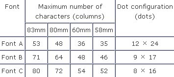 Font A: 1.50 × 3.00 mm Font B: 1.13 × 2.13 mm Font C: 1.00 × 2.00 mm |